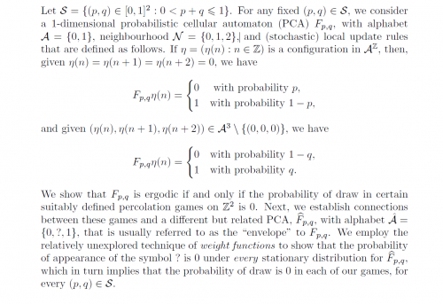 On the ergodicity of a class of 1-dimensional probabilistic cellular automata with size-3 neighbourhoods