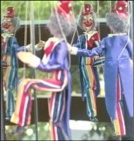 What is the angle between Sam and his middle image, if the one between the mirrors is 59 degrees? Further down on this page, you'll get a chance to submit your answer. The schematic sketch on the right shows the scene from above: the two thick green lines are the mirrors, the white area is the viewer's angle of vision, the thin green lines are imaginay, they serve as orientation aids. The puppet Sam is represented by the red angle near the eye: his reflection in the longer mirror is to the right (back turned to the viewer); his reflection in the shorter mirror is out of sight -- but its reflection in the long mirror is visible as the "middle image" (marked by ?????). |