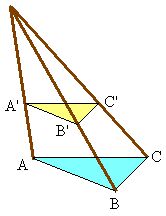 if two triangles ABC and A'B'C' are lined up in so that the lines AA', BB', CC' meet in a single