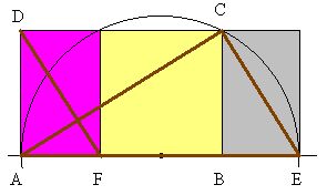 Do I hear you grumbling? You are not happy with all this uncontrolled fuzziness? You'd like crisp, clean equality instead of all those "well-nighs"? Well, last year we tried to work with the socalled "real" numbers -- and you hated them when you were asked to produce crisp, clean proofs. And then somebody said that it all came down to Cauchy sequences and/or Dedekind cuts plus continuity, and when we tried that approach you all freaked out. Let's face it: if you want numerical proportions, you have the choice between honest imperfection (e.g., rabbits) or dishonest perfection (e.g., root five). This is not rocket-science: Eudoxos realized it way back around 400 B.C. So let's get back to geometry, shall we? I admit that we have not yet constructed a perfect golden rectangle, but I promise you it isn't hard. For today, let us suppose it done and continue from there.